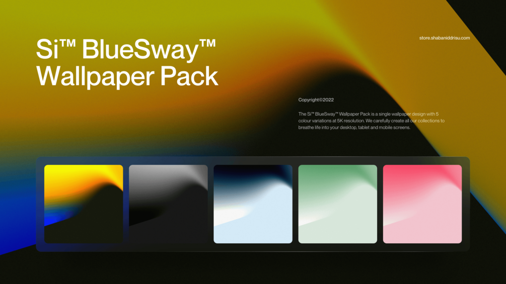 The Si™ BlueSway™ Wallpaper Pack is a single wallpaper design with 5 colour variations at 5K resolution. We carefully create all our collections to breathe life into your desktop, tablet and mobile screens.